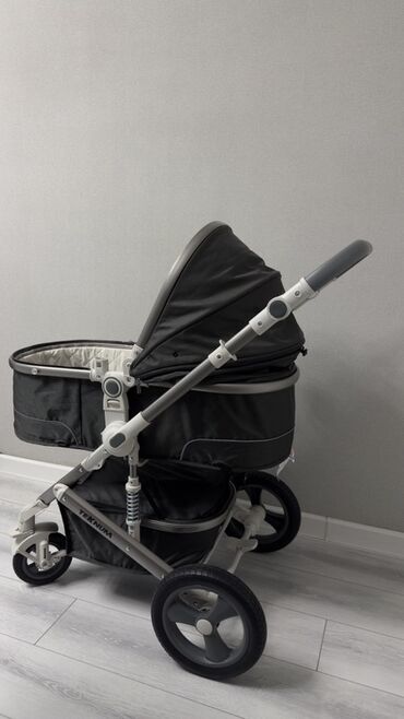 Детская коляска Teknum. почти не пользовались. Находимся в Канте. Особенности: - Цвет: серый с элементами под кожу - Шасси с амортизацией, поворотные передние колеса, задние — увеличенного диаметр...