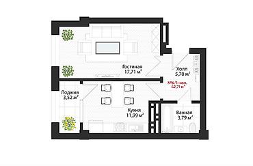 1 комната, 42 м², Элитка, 4 этаж, Готовая ПСО (под самоотделку)
