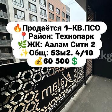 🏠Продается 1- ком квартира 📍Район: Технопарк 🔹СК: Аалам Строй 🔹ЖК: Аалам Сити 🔹Площадь: 53.31 м2 🔹Этаж: 7/10 💸Цена: 56 500 $ Бактыгуль АН Мээрим Инвест
