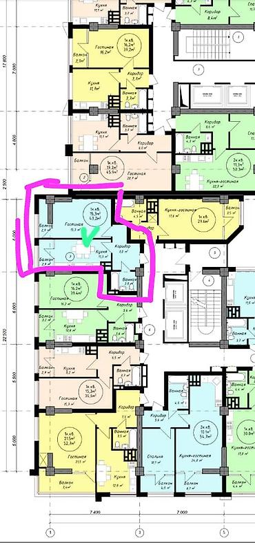 СК Умут Строй Нижний Джал Ул Курчатова 23/ Ахунбаева 250-300м до Ахунбаева 1 ком квартира 44,95м2 этаж 2/10, есть на 10 еще Не угловая сдача ПСО 3-4 квартал 2026 г хорошая цена, месторасположение...