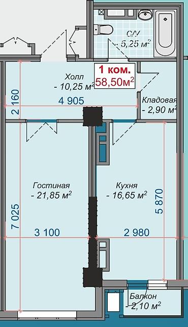 59 500 USD1 комната, 48 м², Элитка, 7 этаж, Готовая ПСО (под самоотделку)