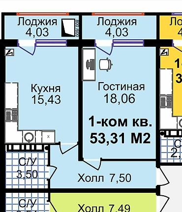 общая площадь: 54м2