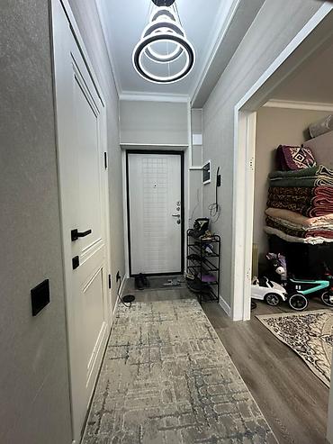 Продаётся светлая уютная квартира с классическим интерьером. Мкр тунгуч 60/1 3этаж прям в зади дома садик - Просторная гостиная в нежных тонах: лепной потолок с люстрой, комплект и кресла), больш...