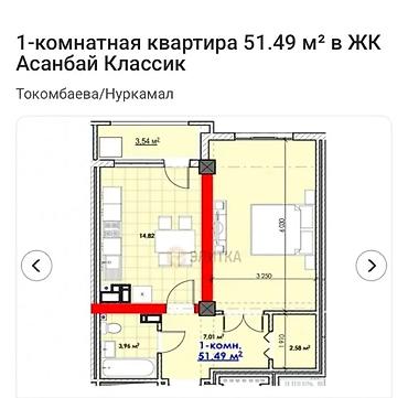 1 комната, 51 м², Элитка, 10 этаж, Готовая ПСО (под самоотделку)