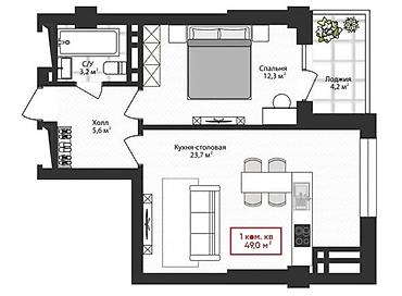 Общая площадь: 49м2