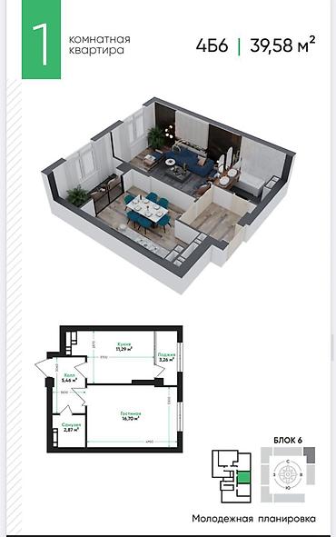 Технопарк !!! Эмель , Севен Голден хаус Продаётся 1‑комнатная бизнес класса . 42,2м2 3/12 Дом качественного материала, фасад керомагранита!!! Характеристики: - Общая комната — 18,2 м² (правиль...