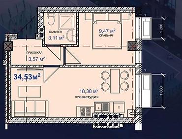 1 комната, 48 м², Элитка, 12 этаж, Готовая ПСО (под самоотделку)