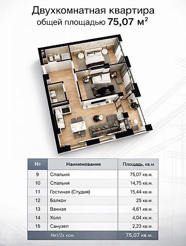 Продаётся стильная 2-комнатная квартира в современном жилом комплексе ЖК Венециан 📍 Район Асанбай — один из самых престижных и комфортных районов города. 🔹 Этаж: 14 из 16 — отличный вид и тишина ...