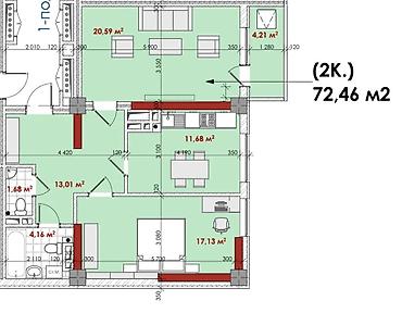 🔹 Площадь: 72,46 м²