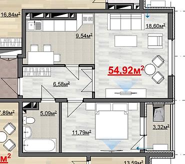91 000 USD2 комнаты, 54 м², 2 этаж
