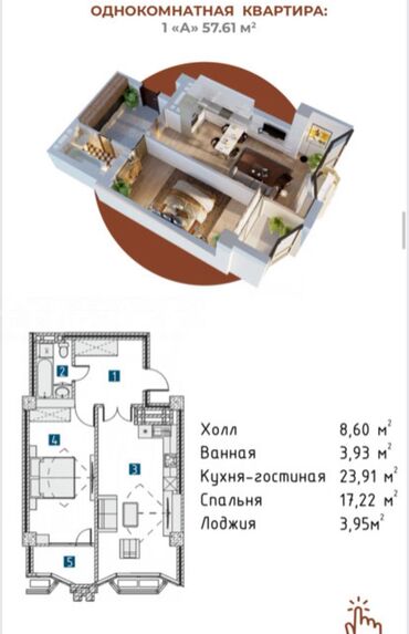Продается 2-комнатная студийная квартира в ЖК премиум класса |Агат|