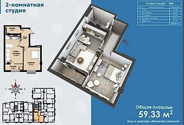 2 комнаты, 54 м², Элитка, 7 этаж, Готовая ПСО (под самоотделку)
