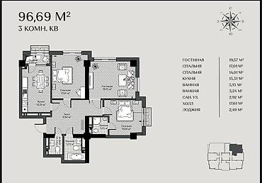 2 комнаты, 73 м², Элитка, 13 этаж, Готовая ПСО (под самоотделку)