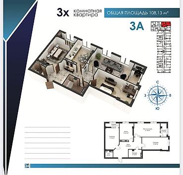 3 комнаты, 108 м², Элитка, 10 этаж, Готовая ПСО (под самоотделку)
