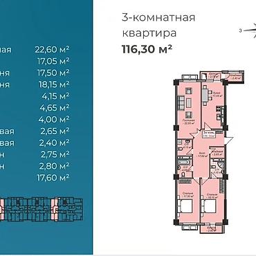 3 комнаты, 116 м², Элитка, 15 этаж, Готовая ПСО (под самоотделку)