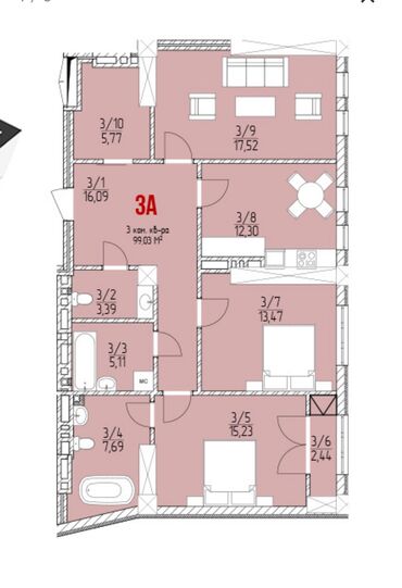 3 комнаты, 104 м², Элитка, 8 этаж, Дизайнерский ремонт