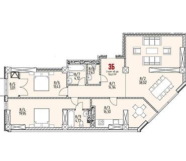 3 комнаты, 116 м², Элитка, 7 этаж, Готовая ПСО (под самоотделку)