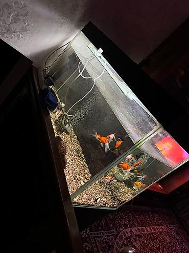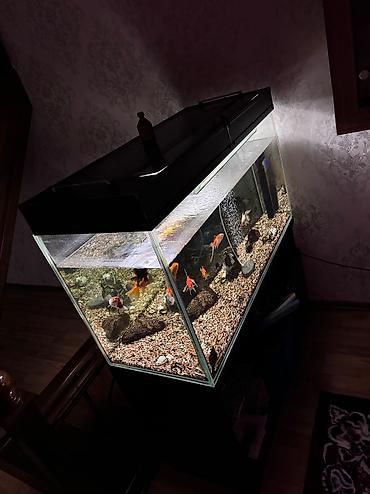 Большой комплект аквариума с тумбой и оборудованием - Прозрачный прямоугольный аквариум из стекла, ориентировочно 250–350 л (длина около 120–130 см, высота ~45–50 см, ширина ~40–45 см). - На прочн...