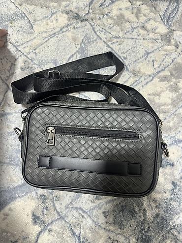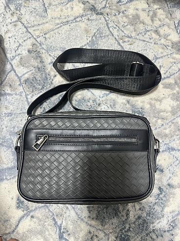 Мужская сумка через плечо/на запястье - Формат: компактная прямоугольная сумка-кроссбоди - Материалы: верх — комбинированный кожзам и износостойкая ткань с геометрическим узором; подкладка — плотн...
