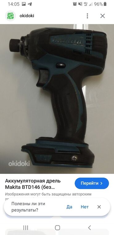 СамовывозПродаётся безпроводной аккумуляторный ударный шуруповёрт Импакт Makita BTD146 (ОРИГИНАЛ) в хорошем рабочем состоянии. Без батареи, только тушка. Цена 6000 сомов.