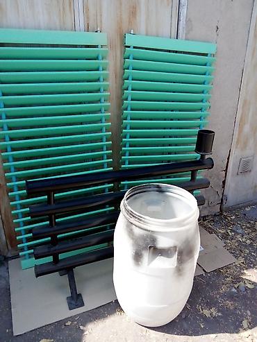 Продается товар для дома1) Жалюзи новые пластиковые наружные зелёного цвета 1.32×0.6 две штуки за 2500 сом. 2)регистр обогреватель из металлических труб черного цвета водяной. размер 1×0.7 за 5000 сом.3)Бочка пластмассовая 100 литр за 600 сом. Всё товары советского производства в отличном состоянии. Торг уместен.