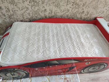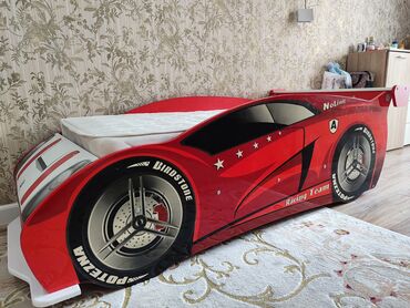 Детская кровать-машина, красно-белая с серыми элементами. - Дизайн в виде спортивного автомобиля: объемные «колёса», спойлер, аэродинамические элементы. - Бортики по периметру для безопасности сна...