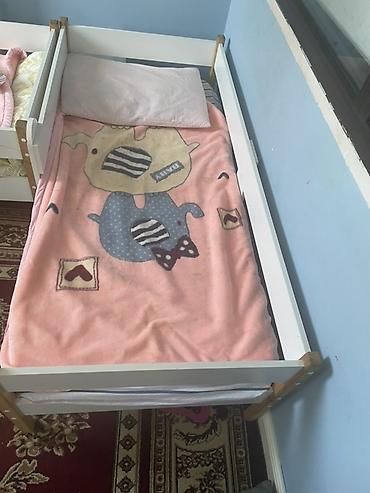Детская кровать из дерево (диван-кровать/кровать-домик) ЦЕНА УКАЗАНА БЕЗ МАТРАСА С МАТРАСОМ 11,500 сом Высота матраса 17см удобная и мягкая, полуортопед. Кроватки 165*75см Если нужен размер больше,...