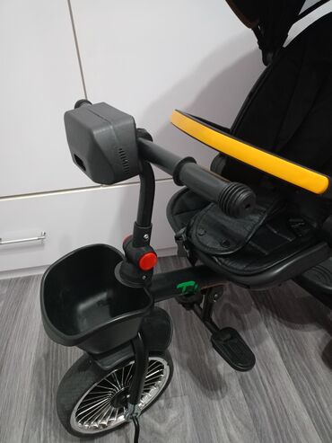 Продается детский велосипед трёхколёсный имеется подножка , педали , и ручка для управления, также есть ремни безопасности , спинка опускается до лежачего состояния , также крутится корпус - можно лицом к маме , можно к миру