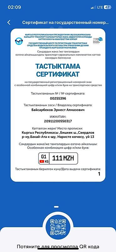 Юридически чистый Автомобильный государственный номерной знак Кыргызстана (KG), формат нового образца. Характеристики: - Тип: передний/задний номерной знак для легкового авто - Страна: Кыргызская ...