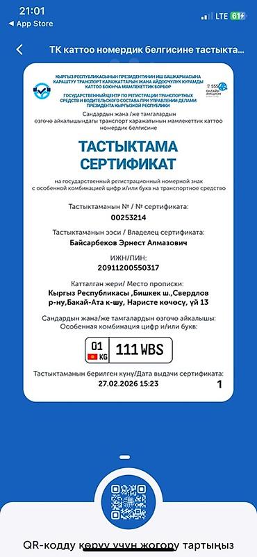 - Регион: 01 (Бишкек)