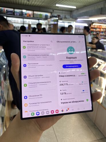 Samsung Galaxy Z Fold6 (модель SM-F956N) - Форм‑фактор: складной смартфон с большим внутренним экраном и внешним дисплеем. - Память: 12 ГБ ОЗУ, 256 ГБ встроенной памяти (доступно ~214 ГБ по скринш...