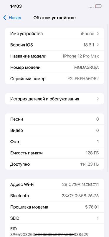 В продаже iPhone 12PRO MAX 256/gb Абсолютно все функционирует,какнадо Полностью отвязать от учетной записи! Не скрывалось-все элементы родные. Состояние аккумулятора 75% ! Минимальный след от экспл...