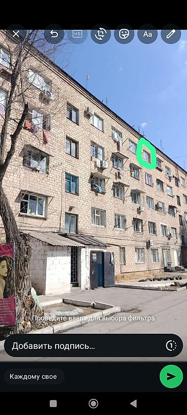 Продается комната/малосемейка в кирпичном доме. Планировка студийного типа: единое пространство с зоной кухни у входа и жилой частью у окна. Потолки около 2,75 м (по техдокументации на фото). Окно выходит во двор.