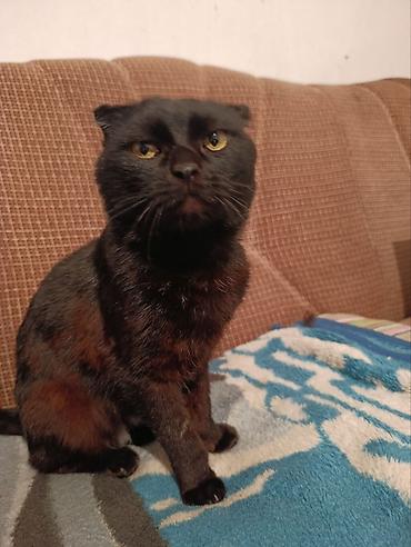Ищет заботливых и любящих хозяев замечательный кот! Ласковый, игривый и очень умный. Быстро привыкает к людям, любит внимание и уют. Отлично подойдёт как для семьи, так и для одного человека. Кот шотландский вислоухий, окрас: черный с шоколадными подпалинами (черепаховый оттенок). Круглая широкая голова, плотные «совиные» уши, желтые выразительные глаза. Короткая, плотная и блестящая шерсть, хвост средней длины. Компактное мускулистое тело, аккуратные лапы.