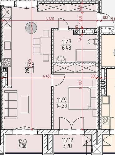 65 000 USD2 комнаты, 44 м²
