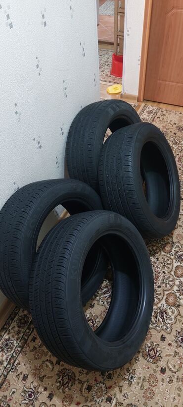 Продаю срочно корейские шины летние, комплект, 2 шины KUMHO, 2 шины Nexen, размер 225/55/17. Сейчас стоят на Киа к7. Недорого, прошу 8000 сомов.