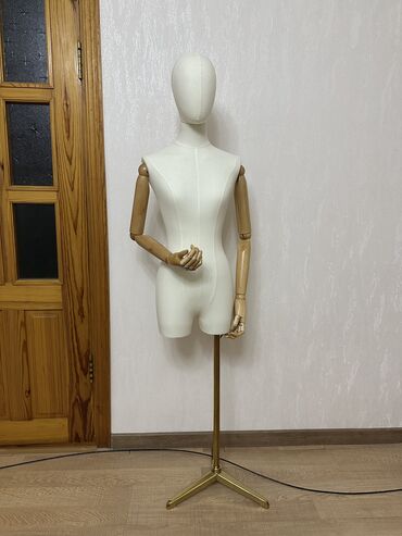Манекен женской одежды с торсами из ткани. У манекенов деревянные руки на шарнирах, позволяющие менять положение. Каждый манекен установлен на металлическую подставку. Подходят для демонстрации оде...