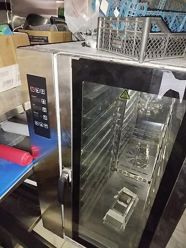 Профессиональная конвекционная печь (камерная), нержавеющая сталь. - Формат: электрическая печь с вентилятором, горизонтальная загрузка. - Камера из нержавеющей стали с направляющими под противни/...
