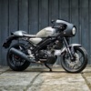 Мотоцикл-круизер Honda Magna (чоппер) черного цвета. Основные особенности: - Классический круглый фаро-блок спереди, хромированная вилка и руль. - V-образный двухцилиндровый двигатель с водяным охл...