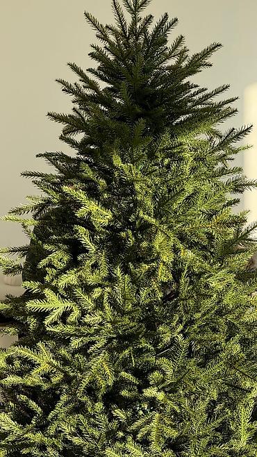 Продается елка, состояние хорошее. Пользовались 2-3 раза. Вытащили и даже не распушили сейчас. Легко гнется, пушится. Высота 2,1 метра. Брали за 15 000. Отдам за 4000 сом, без торга