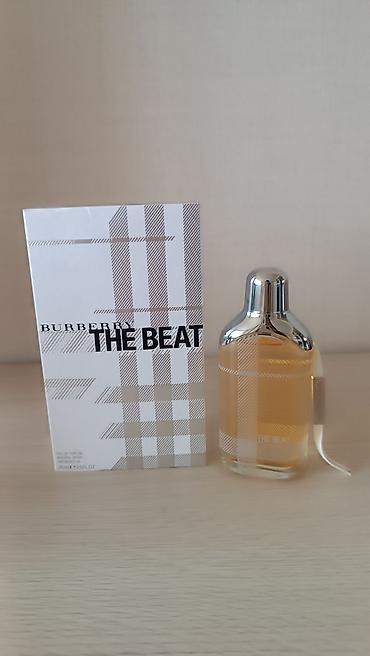 - Burberry The Beat for Her — туалетная вода. Флакон с фирменным клетчатым узором Burberry. На фото видна оригинальная коробка.