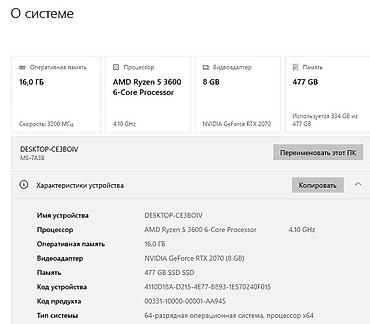 • Процессор: AMD R5 3600, разгон до 4.1 ГГц – стабильный и холодный