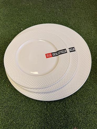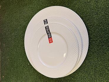 - Комплектация: три круглые тарелки разного диаметра (столовая, десертная/закусочная, подстановочная)