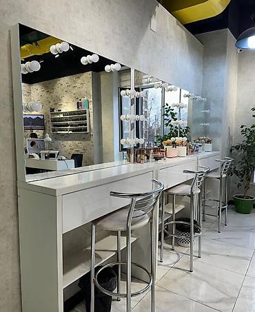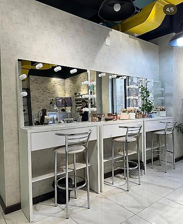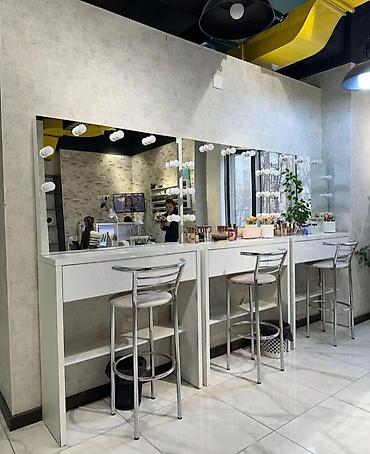 - Рабочие места для визажистов/бровистов: единый модуль или линейка из нескольких столов.