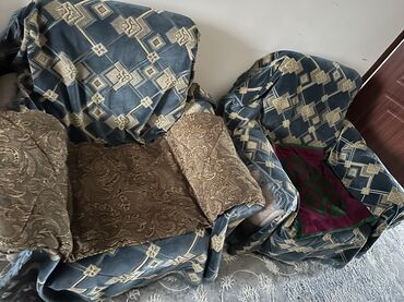 Продается диван с двумя креслами Деревянный каркас Раскладывается в хорошем состоянии Цена 4000 Бишкек самовывоз