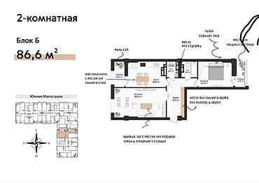 2 комнаты, 86 м², Элитка, 13 этаж, Готовая ПСО (под самоотделку)