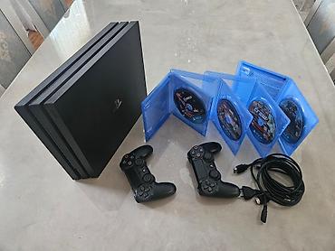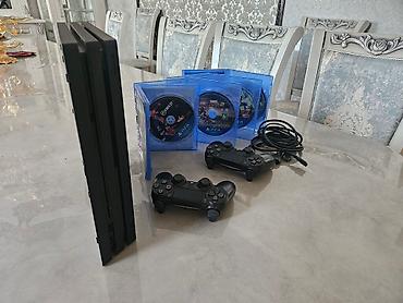 Игровая приставка Sony PlayStation 4 Pro черного цвета 4 джойстика в комплекте с поддержкой 4K разрешения и памятью 1 ТБ. В комплект входят все необходимые кабели: питания, HDMI, а также зарядное у...