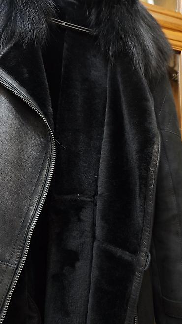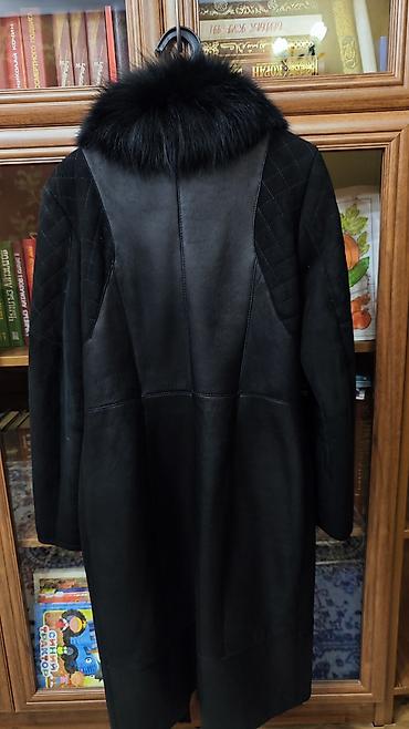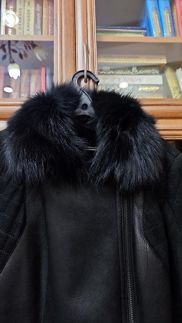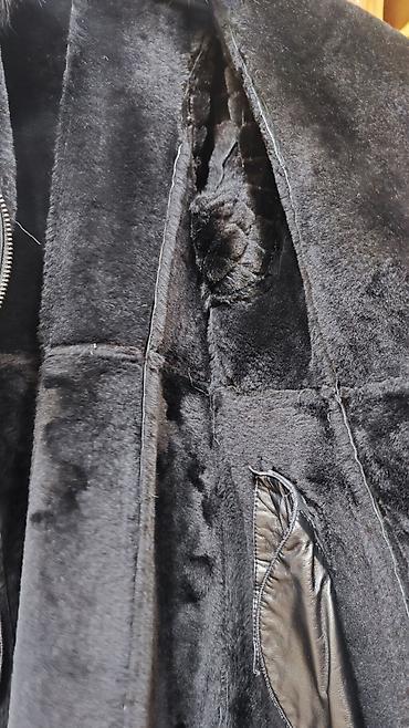 Шуба из натурального меха, классический прямой крой. Цвет: насыщенный тёмно‑коричневый/чёрный с благородным блеском. Длина до середины бедра, длинные рукава. Тёплый воротник‑стойка/полустойка, заст...
