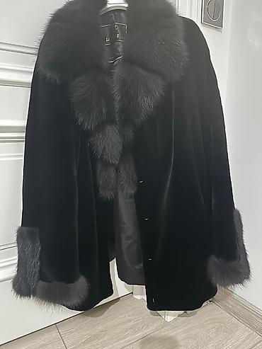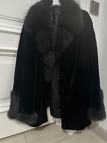 Пончо-накидка с меховой отделкой ТОЛЬКО БОЛЬШОЕ! Надето 2-3 раза - Цвет: молочный с контрастной коричневой опушкой - Крой: свободный А-силуэт, укороченная длина до бёдер/середины бедра - Застёжка...
