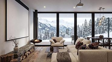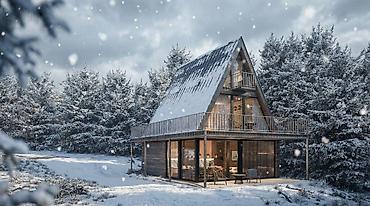 Предлагается стильный коттедж с панорамным остеклением и потрясающим видом на заснеженный лес и горы. Дом выполнен в современном архитектурном стиле A-frame — сочетание уюта, света и природы.
